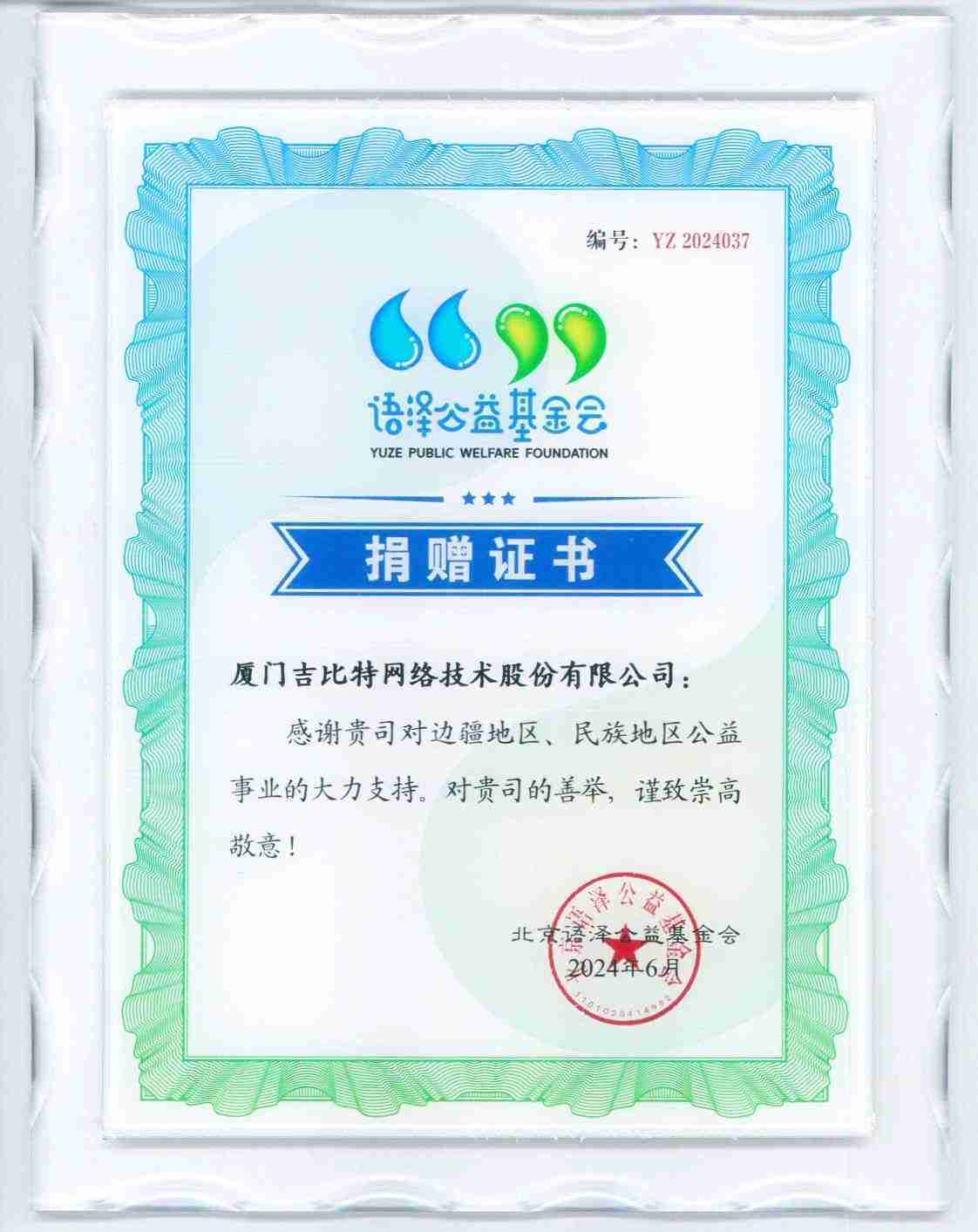 图4::::公益活动主办方为公司颁发的捐赠证书